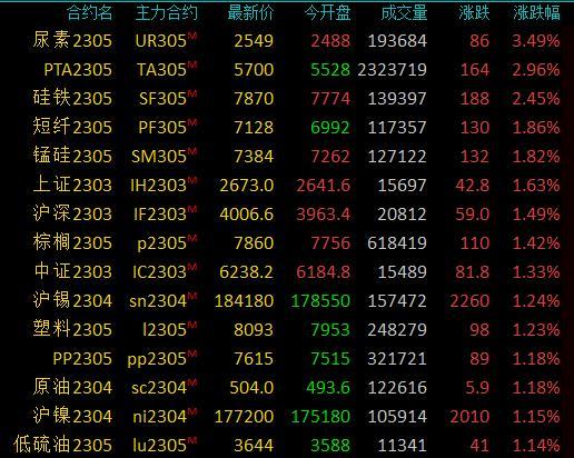 商品期货早盘收盘多数上涨,尿素涨超3%,PTA涨近3%