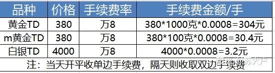 黄金T+D、mini黄金T+D和白银T+D的手续费如下: