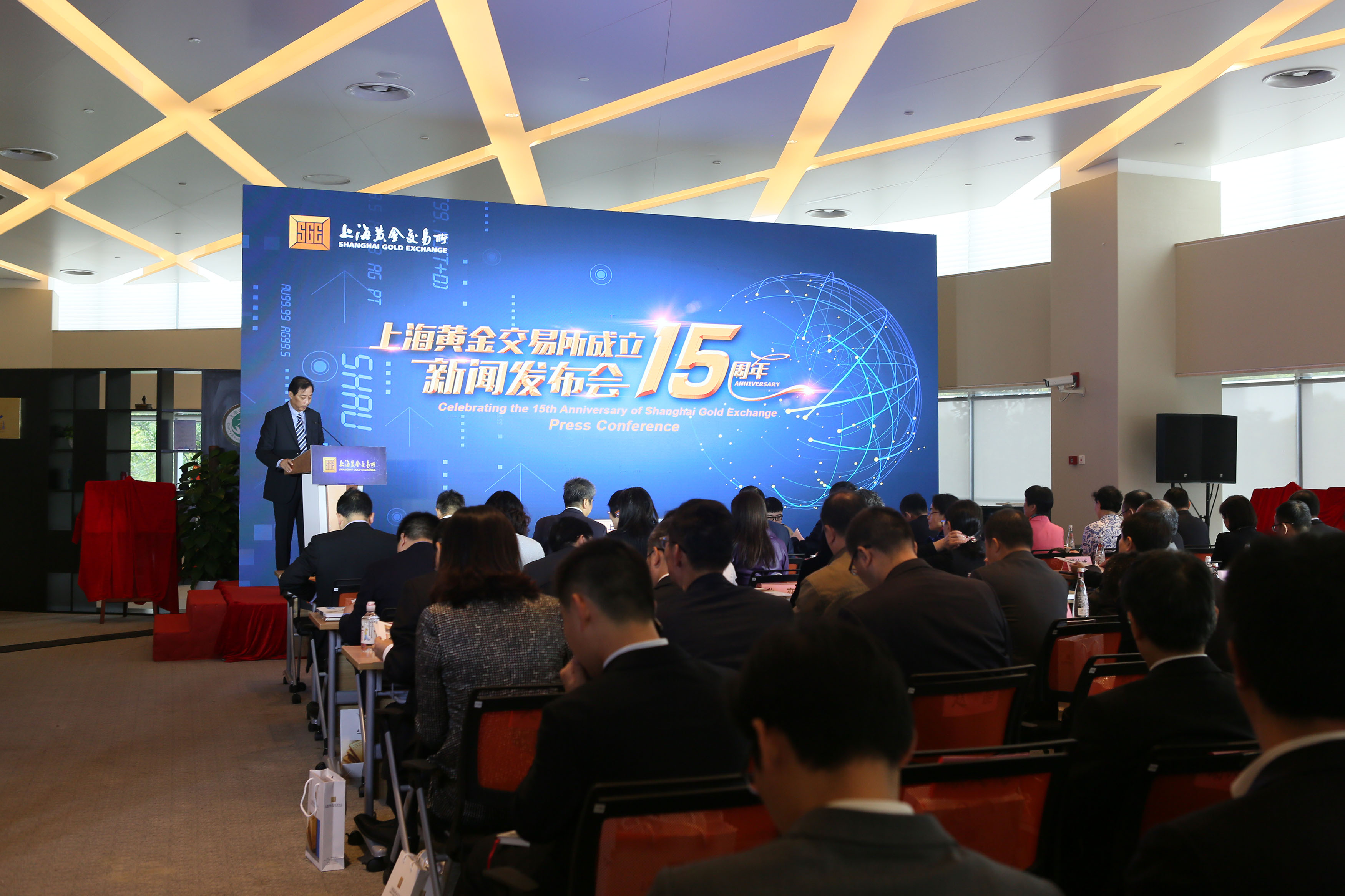 2017年10月26日,上海黄金交易所成立十五周年新闻发布会在中国金融信息中心召开。中国人民银行金融市场司副司长邹澜、中国人民银行上海总部副主任金鹏辉、上海市金融办副主任解冬,以及来自全球的黄金交易所会员单位、同业机构及媒体记者代表等100多位嘉宾出席了发布会。